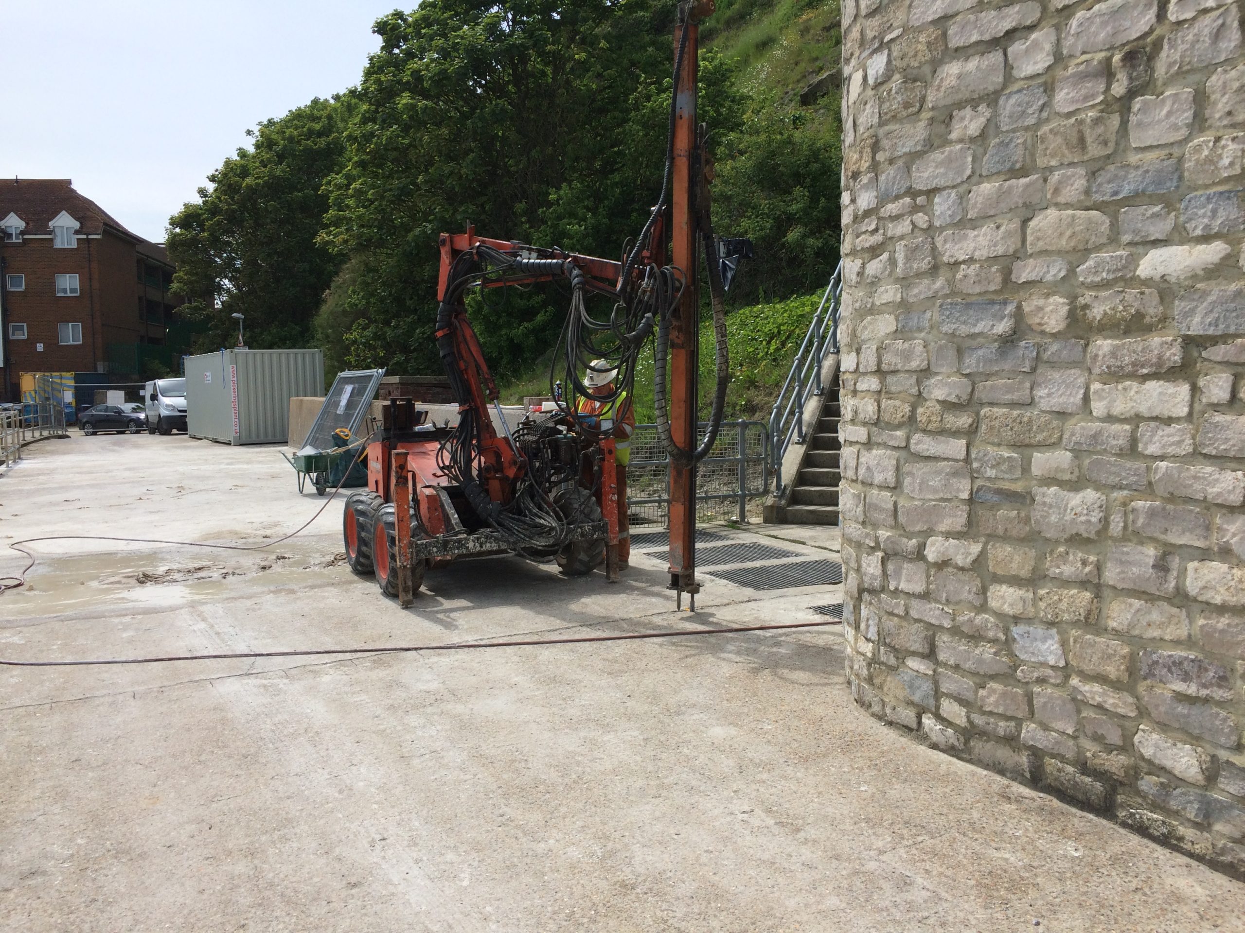 - 700 No. 40mm diameter holes drilled 2.4 to 3.2 metres deep into the rear retaining wall.